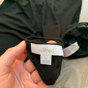 Elevate your wardrobe with this stunning Aritzia Wilfred Cami Tank Top in a chic black color. This size XS top features a beautiful paisley lace trim that adds a touch of elegance to any outfit. The criss cross back design adds a unique and stylish twist to a classic tank top, perfect for layering or wearing on its own. Made by the renowned brand Aritzia Wilfred, you can trust in the quality and craftsmanship of this piece. This pre-loved top is in excellent condition and ready to be a versatile staple in your closet. Whether dressed up with a blazer or paired with jeans for a casual look, this tank top is sure to turn heads and make a statement.
