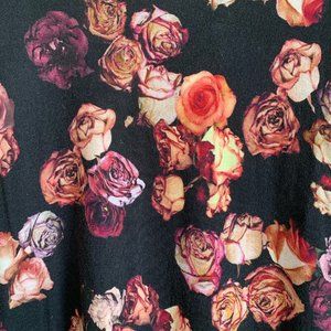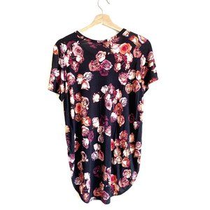 Aritzia Wilfred T-Shirt Top with colourful rose pattern in a Size S. This T-shirt top has slits on the side. It has a slight stain but not really noticeable because of the patterns and colour of the shirt. For reference of the fit, please look at the last photo.