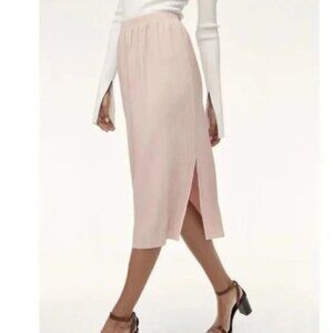Aritzia Wilfred Celesse Pleated Midi Skirt Side Slit Pink