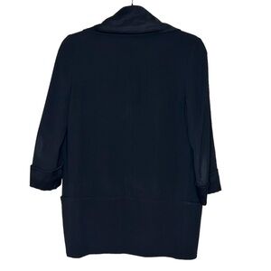 This is an open-front, drapey blazer with tacked, 3/4-length sleeves. It's made with textural, woven fabric from Japan with a nice weight.