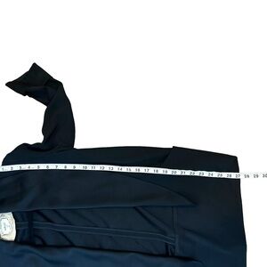 Black crepe material with a silk trim