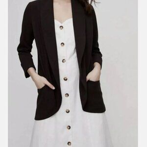 Classic Aritzia minimalist blazer. Open-front, draped blazer with tacked 3/4-length sleeves. Nice slanted side pockets flowing with the drape.. Gorgeous shawl lapels.