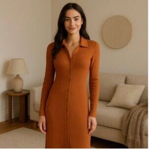 Aritzia Wilfred Cove Long Sleeve Knit Ribbed Dress Oriole Orange Size Large