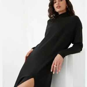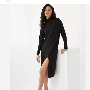 Aritzia Wilfred Cyprie 100% Merino Wool Slit Sweater Dress Black Sz Small