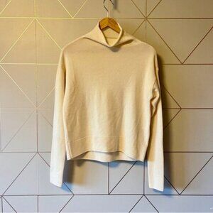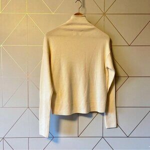 Aritzia Wilfred Cyprie Sweater 100% Merino Wool Light Birch in very excellent pre worn condition. Like new. A cozy Wilfred staple, this is a fully fashioned mockneck sweater with dropped shoulders. It’s knit with Embrace Merino™ — extra-fine 100% merino wool yarn coveted for its natural warmth and super soft feel. We source ours from a premium Italian mill. This version is constructed using a Jersey stitch for a soft drape and a smooth, flat feel. Please see all photos.