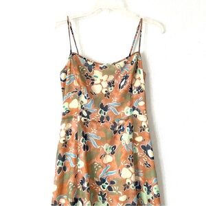 This is a long, slip-style dress with a side slit. It's made from a lightweight chiffon fabric. Brand new and no flaws. Beautiful print custom designed in-house by Aritzia's designers. Stretchy back means this dress is breathable and comfortable!