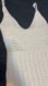 This is a fully fashioned V-neck midi dress with a side slit. It’s knit with soft, all-season midweight cotton yarn. It’s constructed with both a Crochet stitch and a Mesh stitch for a textural look and airy feel.