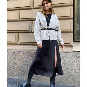 Aritzia Wilfred Evora Backless Long Sleeve Satin Dress Slit Black Size 6