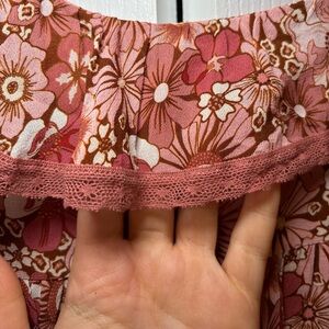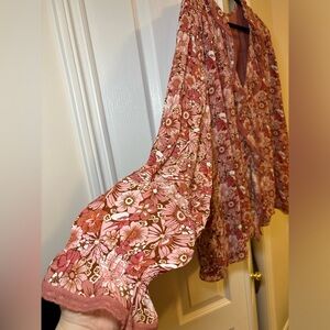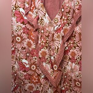 Aritzia Wilfred - Floral Eden Pink Long Sleeve V-Neck Bohemian Blouse in Size M