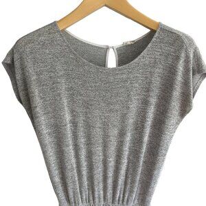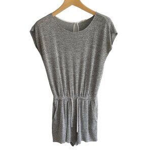 This is a grey heather tie-waist, jersey-knit romper by Aritzia's Wilfred Free brand.