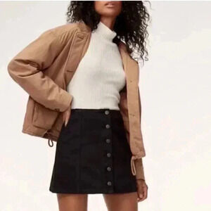 Aritzia Wilfred Free Ahrens Button Black Denim Mini Skirt sz 00