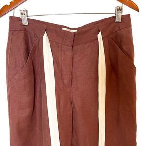 This is a lightweight trouser with a silk drawcord and rolled cuff hem. They're made with a drapey linen blend.