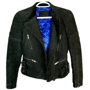 This is a very stylish, trendy leather moto jacket in soft, Italian lambskin.