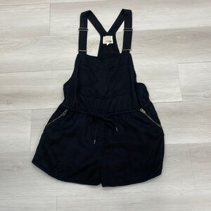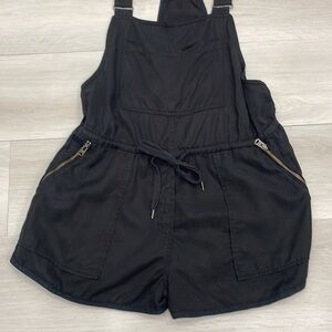 Aritzia Wilfred Free Beatriz black overall romper made with soft drapey 100% lyocell fabric, adjustable straps, adjustable waist drawcord, zippered pockets and faux fly. Size Medium. Very good used condition. Please see photos, reasonable offers welcome!