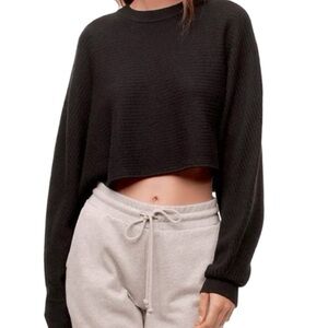 Aritzia Wilfred Free Black Lolan Cropped Knit Sweater | 100% Merino Wool | Size 2