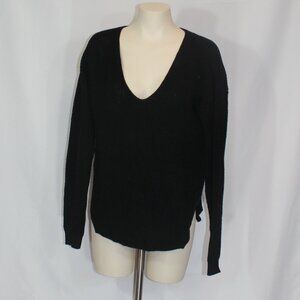Aritzia Wilfred Free Black Walter Waffle Knit Merino Wool V-neck Sweater Sz S