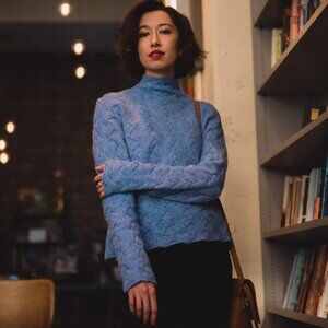 Aritzia Wilfred Free Michal Sweater Wool Alpaca Blend Cable Knit Turtleneck Mock neck style. A textured sweater that is cozy and warm and brings brightness to a classic wardrobe staple sweater. Blue colour as shown. Super soft cozy knit material. Turtle neck with long sleeves.
