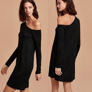 Aritzia Wilfred Free Brinkley Dress Grey Reposa Size Medium Jersey Stretch Mini