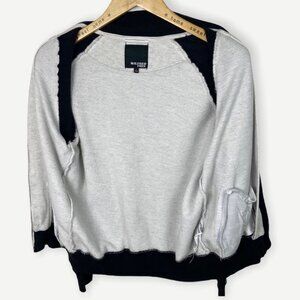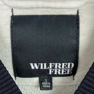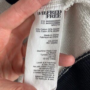Aritzia Wilfred Free Black and White Colorblock Full Zipper Lightweight Bomber Jacket in Women’s Size Small. Ribbed cuffs. Front pockets. 70% cotton and 30% modal. Machine washable. Very good pre-loved condition. No visible flaws.