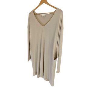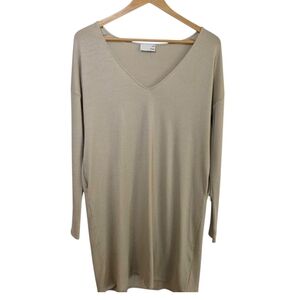 Aritzia Wilfred Free Gail V-Neck Oatmeal Jersey Knit Long Sleeve Mini Dress.