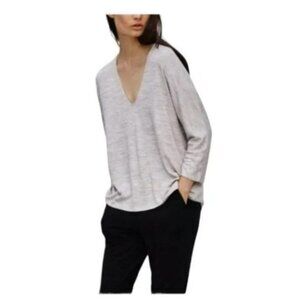 Aritzia Wilfred Free Grey Heathered Deep V neck 3/4 Sleeve Shirt size XS