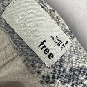 Aritzia Wilfred Free Grey Kelsey Snake Print Denim Pencil Skirt in Bone and Women's Size 8. Zipper fly with button closure. Front and back pockets. Belt loops. Machine washable. 97% cotton and 3% spandex. Article # 73763. Utility mini skirt.