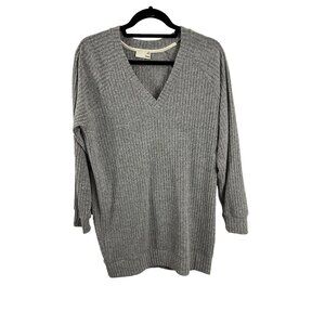 Aritzia Wilfred Free Grey Longlength Sweater Women's Size XXS V-Neck Cozy Fall