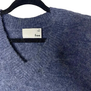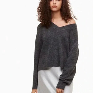 Aritzia Wilfred Free Krause Navy Long Sleeve V-Neck Wool Blend Sweater Size XS