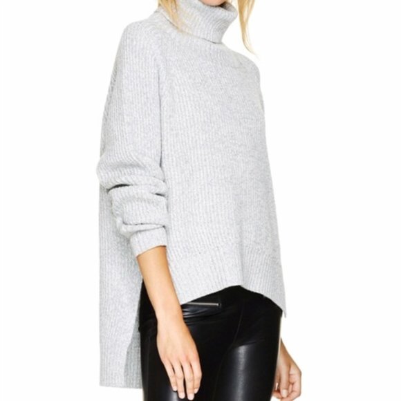 Aritzia Wilfred Free Lin Grey Sweater High Low Hem Wool Turtleneck Women's Small