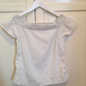 Brand new, never worn condition. Size xxs. It is an off-white colour, denim material, off the shoulder top.