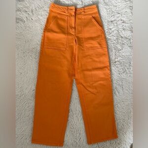 Super flattering high-rise fit with wide legs and big front patch pockets. Perfect for spring/summer outfits. Zip + button closure, soft sturdy cotton fabric.