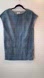 This excellent near new condition pre-owned denim mini dress features a relaxed, boxy silhouette and short capped sleeves. The dress is made of a dark to medium-wash denim fabric with fading and has two large patch pockets on the hips. The hemline is raw and frayed, adding a casual touch.