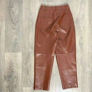 Aritzia Wilfred Oracle Pants High Waisted Leather Cognac Brown Straight Leg Faux leather balloon