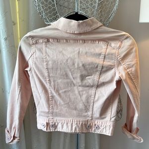 Super cute peach jean jacket. 97% cotton and 3% spandex. Fabric is very soft. Jacket is in pristine condition as only worn twice.
