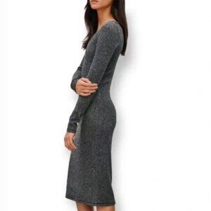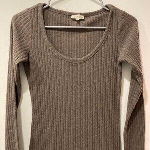 Aritzia Wilfred Free Ribbed Sweater Knit Brown Gray Taupe Long Sleeve Midi Dress