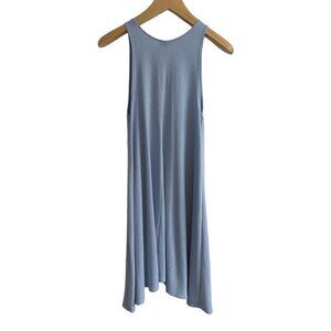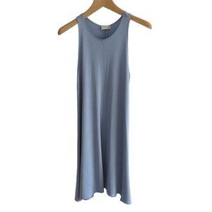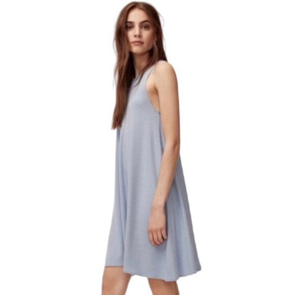 This baby blue dress is made with Reposa — Wilfred Free's signature jersey knit, chosen for its flattering stretch and beautiful drape. The soft A-line shape feels nice and breezy.