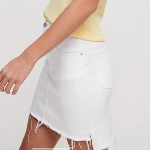 Aritzia Wilfred Free Tanit Skirt White Denim Mini Skirt Frayed Hem size S small