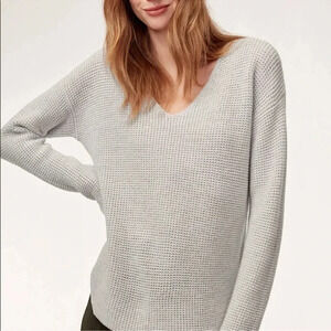 Aritzia Wilfred Free Wolter Wool Grey V-Neck Long Sleeve Knit sweater Size Small