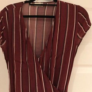 Wilfred Free pinstripe wrap midi dress in Red Rust/Oak from Aritzia