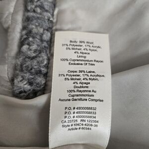 Material: Wool blend (39% wool, 31% polyester, 17% Acrylic, 5% Mohair, 4% nylon, 4% alpaca)