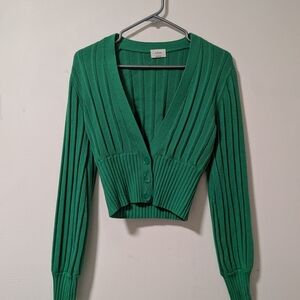 Aritzia Wilfred Green Plunge Front Cardigan Size Small MERINO WOOL