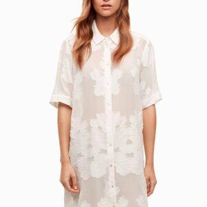 A simple silhouette in textured jacquard fabric. This shirtdress is made with a beautiful jacquard that's clipped by hand in a floral pattern. Wear it on its own or layered over pants.