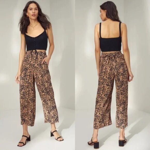 Aritzia Wilfred High Rise Faun Wide Leg Leopard Print Pants Size Medium