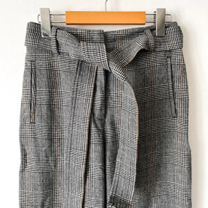 Aritzia Wilfred Jallade Tie Front Wool Blend Pants Trousers Grey Plaid Size 4