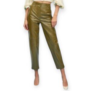 These fun pants are the perfect addition to your Fall wardrobe. They are avocado green which is a color that goes with just about anything. You can wear them to a bar or club; for a presentation, or simply for brunch with the girls. They are versatile and would look equally as good with a modest sweater as with a slinky black sexy top.