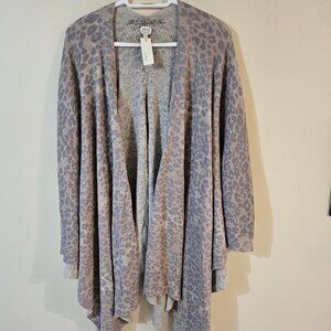 Over the shoulder collarless animal print shawl. Length about 32"