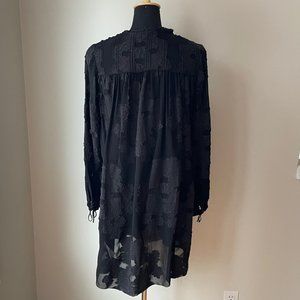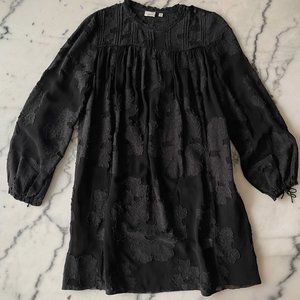 Stunning and versatile Aritzia Wilfred dress with gorgeous floral applique semi-sheer fabric with a black slip underneath. Incredibly flattering shape, wear with heels or wedges, sneaker or boots, it truly is a dress for all occasions. In great used condition, some of the applique florals are weathered at the edges. Size medium.