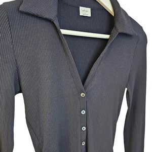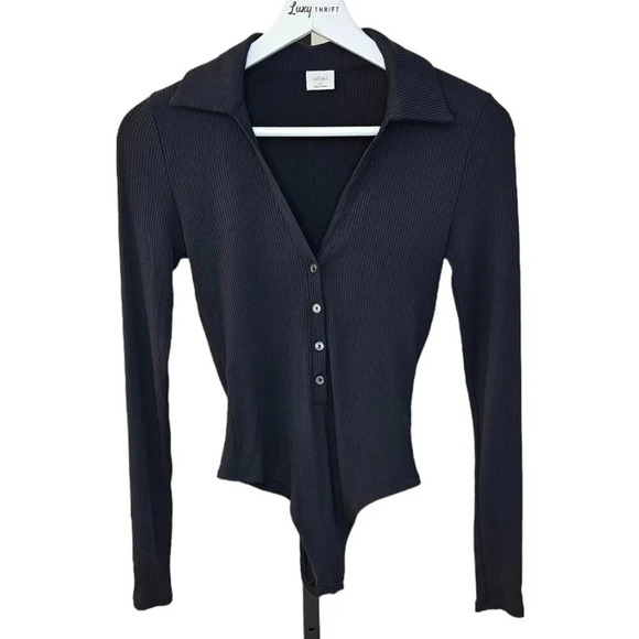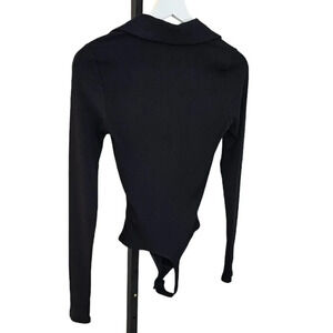 Aritzia Wilfred Long Sleeve V-Neck Ribbed Collared Bodysuit Size XS Black