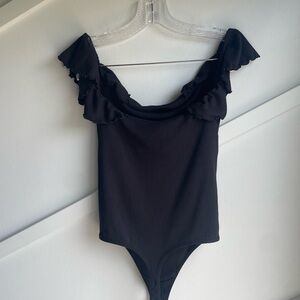 Aritzia Wilfred Maeva Ruffled Off-shoulder Black Bodysuit size M