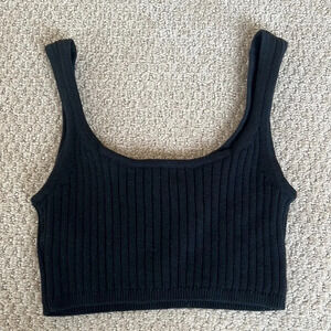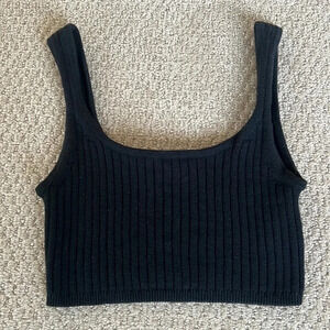 Aritzia Wilfred Manila Merino Wool Cropped Ribbed Tank | Size XS Black
